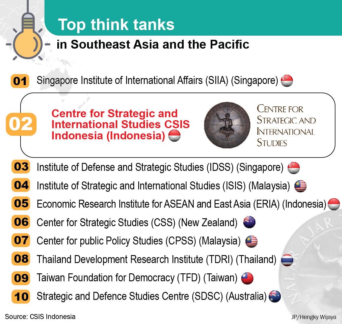 Top think tanks in Southeast Asia and the Pacific Top think tanks in Southeast Asia and the Pacific (JP/Hengky Wijaya)