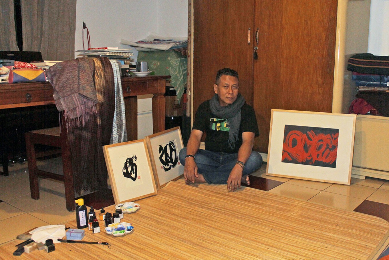 “I walked inside Dia.Lo.Gue last year. I saw these transparent tables as well as its walls, with their empty gaps. I began to think that I could install my hanging scrolls on these empty walls, while exhibiting some archives on the tables,” Nirwan told The Jakarta Post in a recent interview.