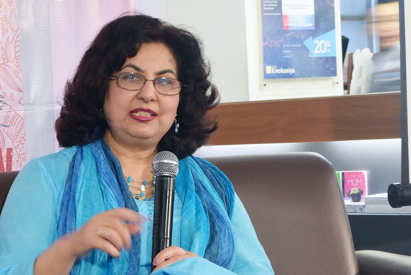 Power of words: Author Qaisra Shahraz (right) and moderator Christian Putra speak during a meet and greet event at the Kinokuniya Bookstore in the Plaza Senayan mall in Central Jakarta. (Mizan Publishing House/File)Her short story A Pair of Jeans, from her 2013 short story collection A Pair of Jeans and Other Stories explores this very topic of victimization and the harsher judgments that Muslim women are subjected to regarding what they choose to wear. Shahraz argues that oppression might be the case in some extreme examples such as Iran, Afghanistan and Saudi Arabia, where the West tends to get their perceptions from.
