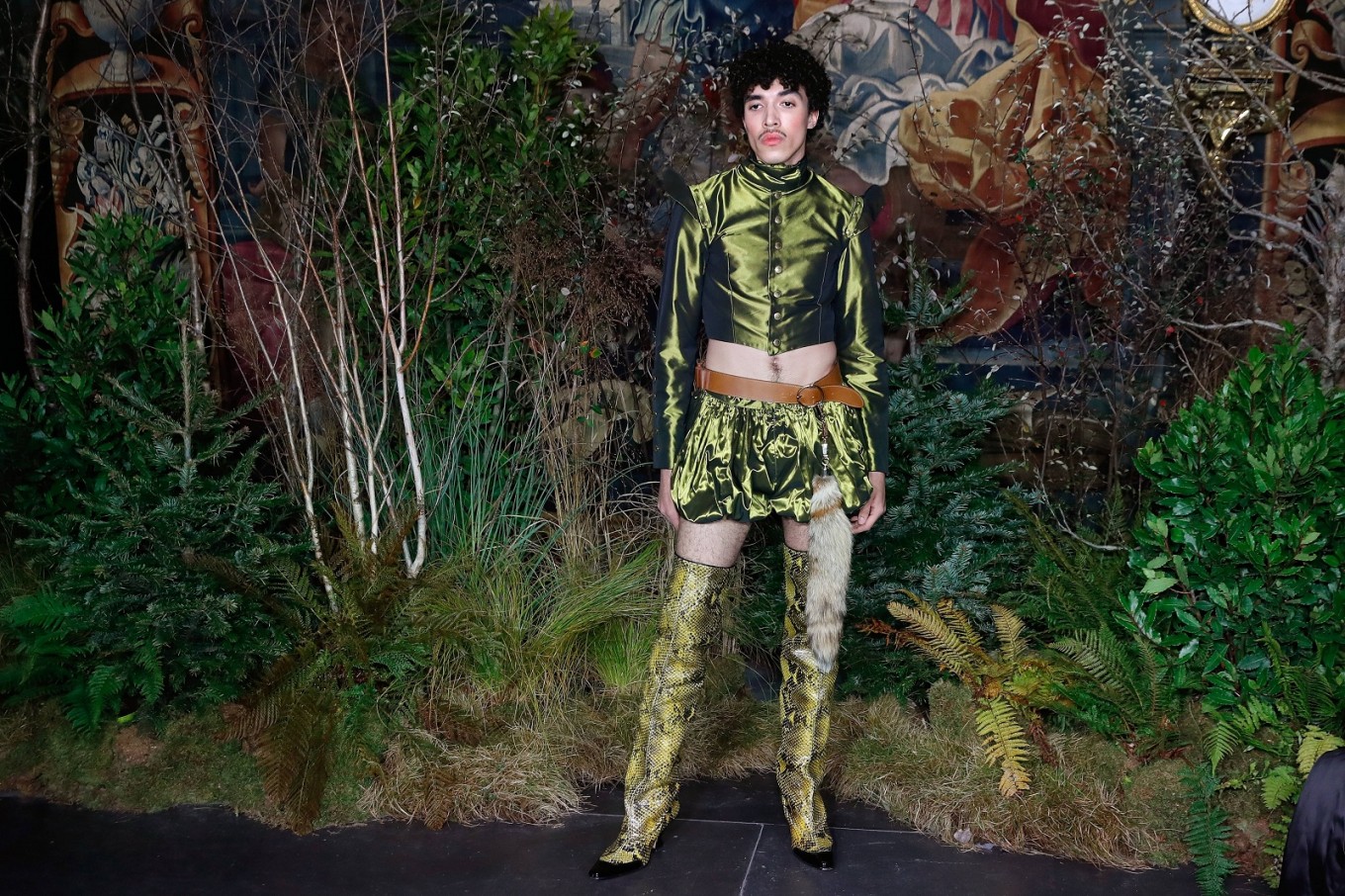 His debut Paris show had all his usual cheeky panache: A line of Renaissance court dandies in silken doublets, dresses and hunting attire, full of delicious double entendres.