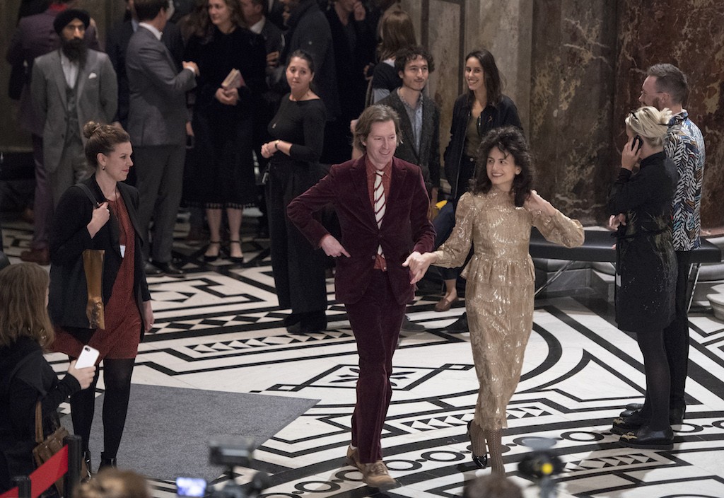 The opening of the exhibition on Monday evening was attended by some of Anderson's perennial collaborators such as actors Jason Schwartzman and Tilda Swinton.