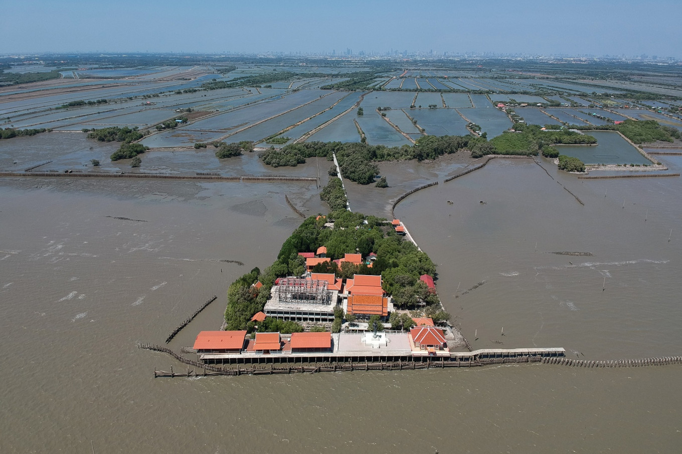 A dangerous combination of climate change, industrial farming and rapid urbanisation are endangering the Gulf of Thailand's coasts, stripping away precious mangrove trees and leaving some buildings like Somnuek's surrounded by sea water.