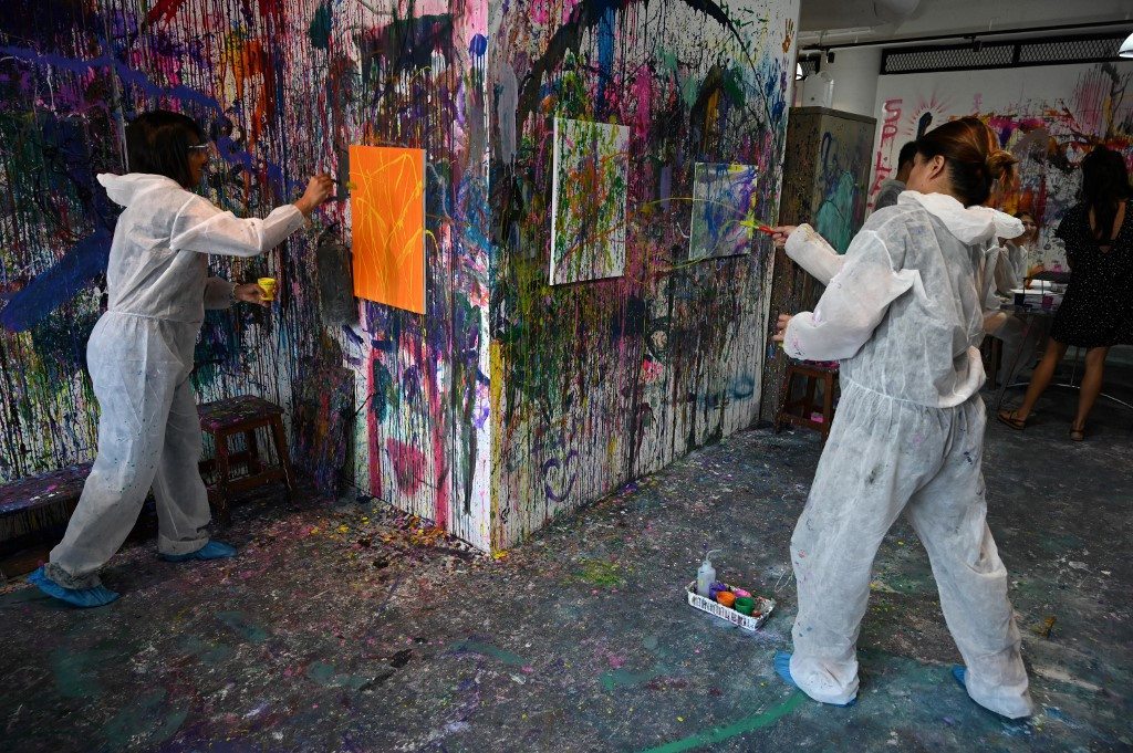 For Sg$39 (about $28), guests at Splat Paint House get a package including canvas, paint, gloves and overalls.
