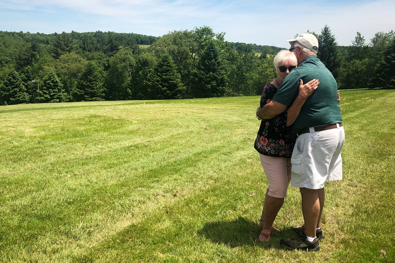 Nick and Bobbi Ercoline, the couple featured on the Woodstock album cover, pose together, at the site where the photo was taken 50 years ago, in Bethel, New York, US, on June 12, 2019. Nick and Bobbi Ercoline, the couple featured on the Woodstock album cover, pose together, at the site where the photo was taken 50 years ago, in Bethel, New York, US, on June 12, 2019. (REUTERS/Dan Fastenberg)