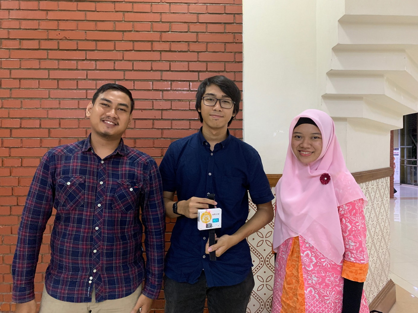 Multidisciplinary project: Three University of Indonesia students – Irfan Budi Satria from the school of electrical engineering (center), Nabila “Nayu” Ayu Budianti from the school of biology (right) and Alhuda Reza Mahara from the school of computer science – created Nettox, a prototype smartwatch to help people deal with internet addiction. (JP /Medina Rahma Putri)