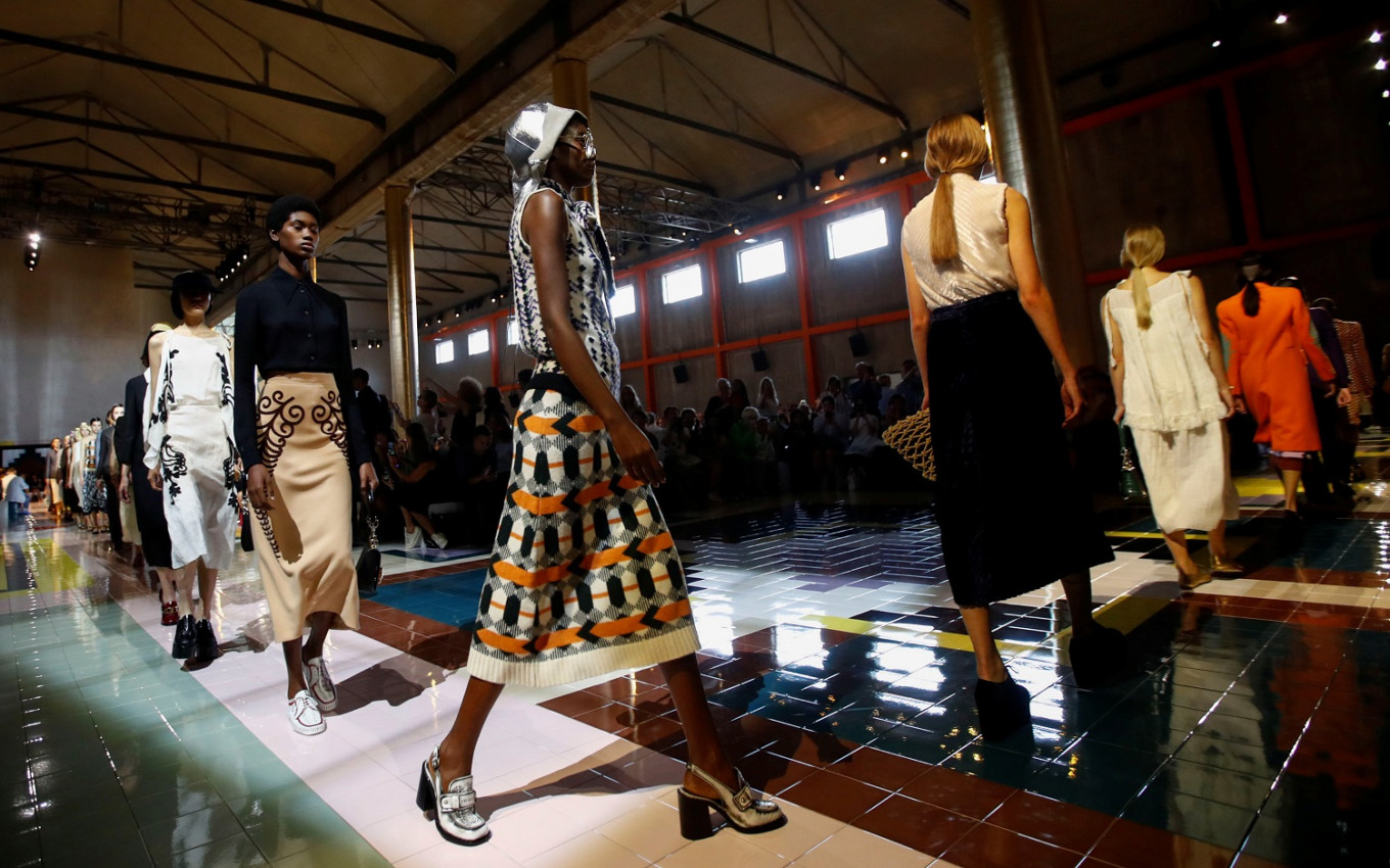 Models present creations from the Peter Pilotto Spring/Summer 2020 collection during fashion week in Milan, Italy, on September 18, 2019. (REUTERS/Alessandro Garofalo)As well as unveiling their latest womenswear, designer duo Peter Pilotto and Christopher De Vos showcased some new creations for men in the line that included plenty of floral patterns and bright hues - orange, lime, turquoise and pink.