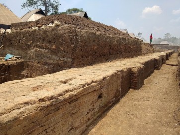 Around 200 meters of the wall have been fully uncovered after the archaeology team dug for 10 days in late October. It is 1.4 m in height and is built from bricks believed to be typical of those used in the Majapahit era.