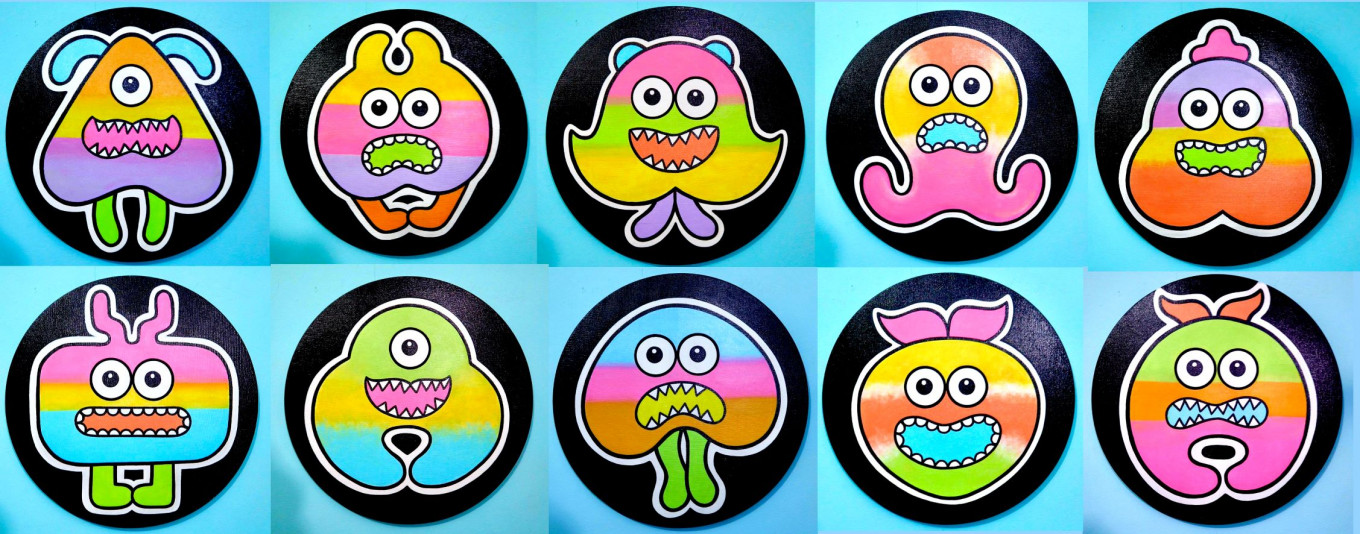 These works of art, including those on display at her exhibition, titled “Suddenly Monster Part 1”, at the Artsphere pop-up gallery in Senayan City shopping center, Central Jakarta, in January, were inspired by her struggles managing her symptoms after being diagnosed with bipolar disorder in 2013.