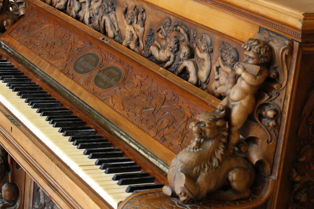 Moshe Porat, an Israeli piano tuner who has researched the instrument, told AFP the light brown upright decorated with carvings of wingless cherubs, animals, flora and other instruments was a "visual masterpiece".