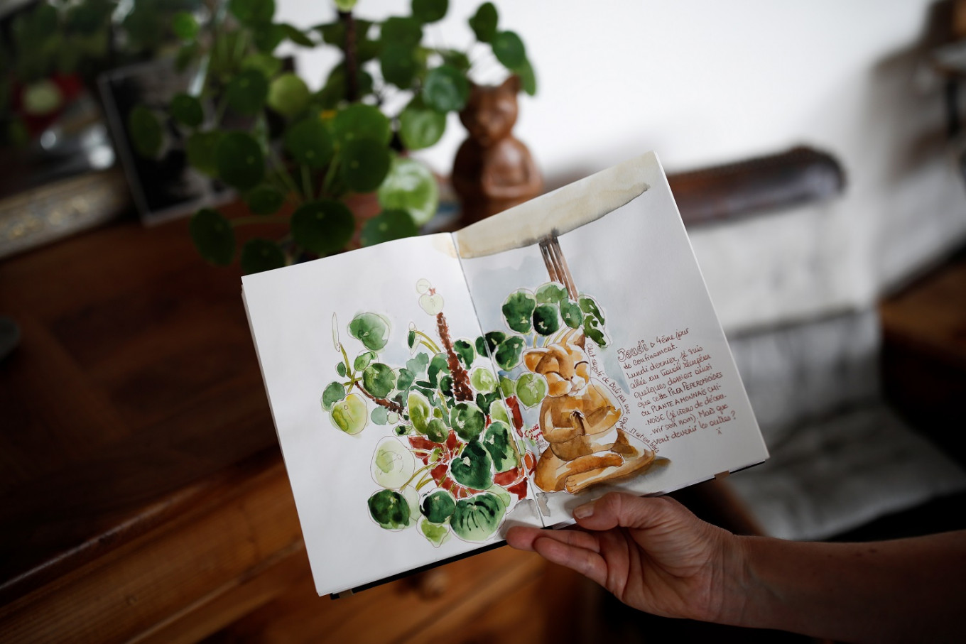 Goyet, who has been posting her watercolors on Instagram, lives in a 94-square-meter apartment with her two adult children. Since the lockdown began on March 17, she has only stepped out to shop for groceries and once to go jogging.