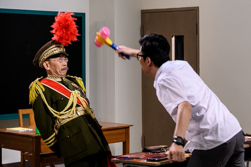 Back in February, as the coronavirus first surfaced in Hong Kong, the program featured a scene showing a police officer jumping out of a rubbish bin to deliver a skit about protective equipment.
