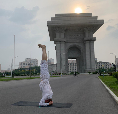 He has posted photos on social media of him striking yoga poses in front of some of Pyongyang's landmarks, including the Juche Tower, the unfinished Ryugyong Hotel, and the Arch of Triumph.