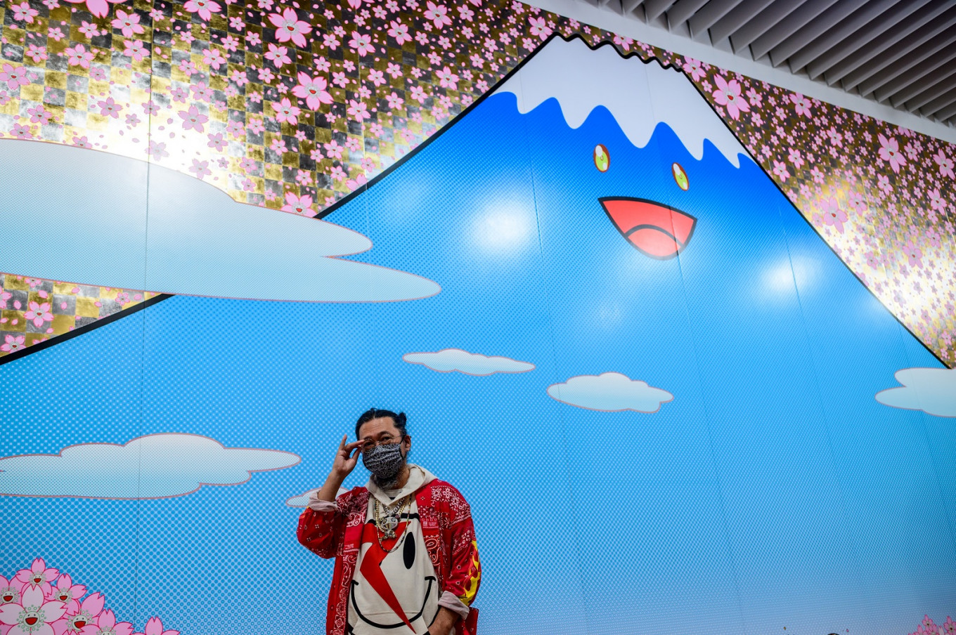 "The museum exhibition was delayed and we're still not in a situation where a lot of people can gather, but I think human beings need communication through art," Murakami told reporters outfitted in mandatory masks and face shields.
