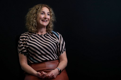 This photo taken on August 6, 2020 shows New Zealand media mogul Sinead Boucher speaking while posing at the headquarters of Stuff media in Wellington. - Tucked away in Sinead Boucher's sock drawer is the one-dollar coin that transformed the former journalist into New Zealand's biggest media mogul, giving her a platform to challenge Facebook and other social media giants. (AFP/Marty Melville )