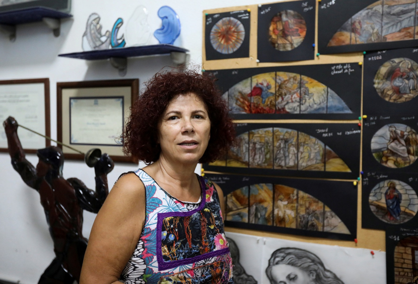 Husseini learnt her craft in France, sent by her father, a church engineer who used to order stained glass from overseas as leaded, stained glass was not common in Beirut prior to the war.