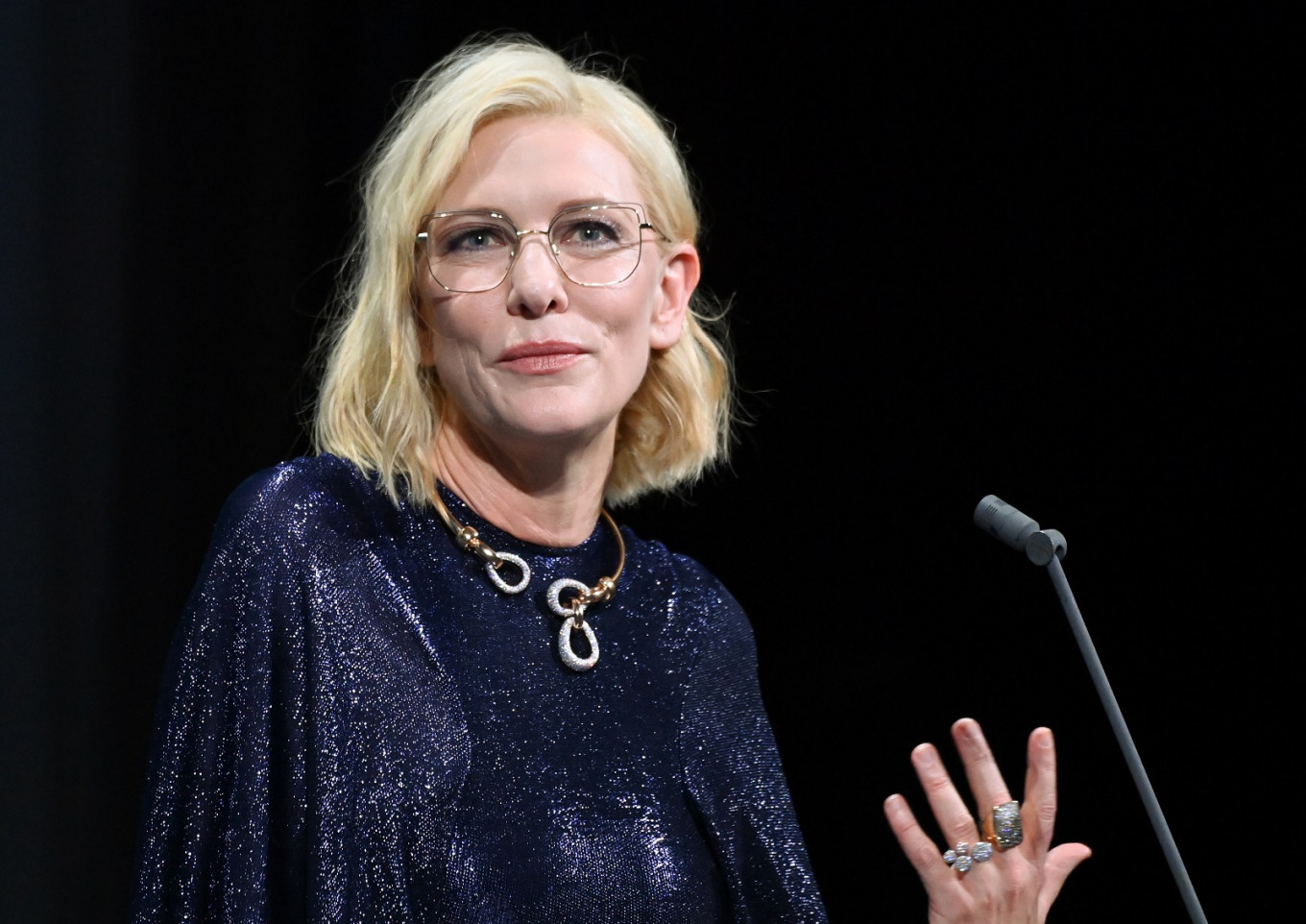 Jury President of the 77th Venice Film festival, Australian-US actress Cate Blanchett delivers a speech during the opening ceremony on the opening day of the 77th Venice Film Festival, on September 2, 2020 at Venice Lido, during the COVID-19 infection, caused by the novel coronavirus.