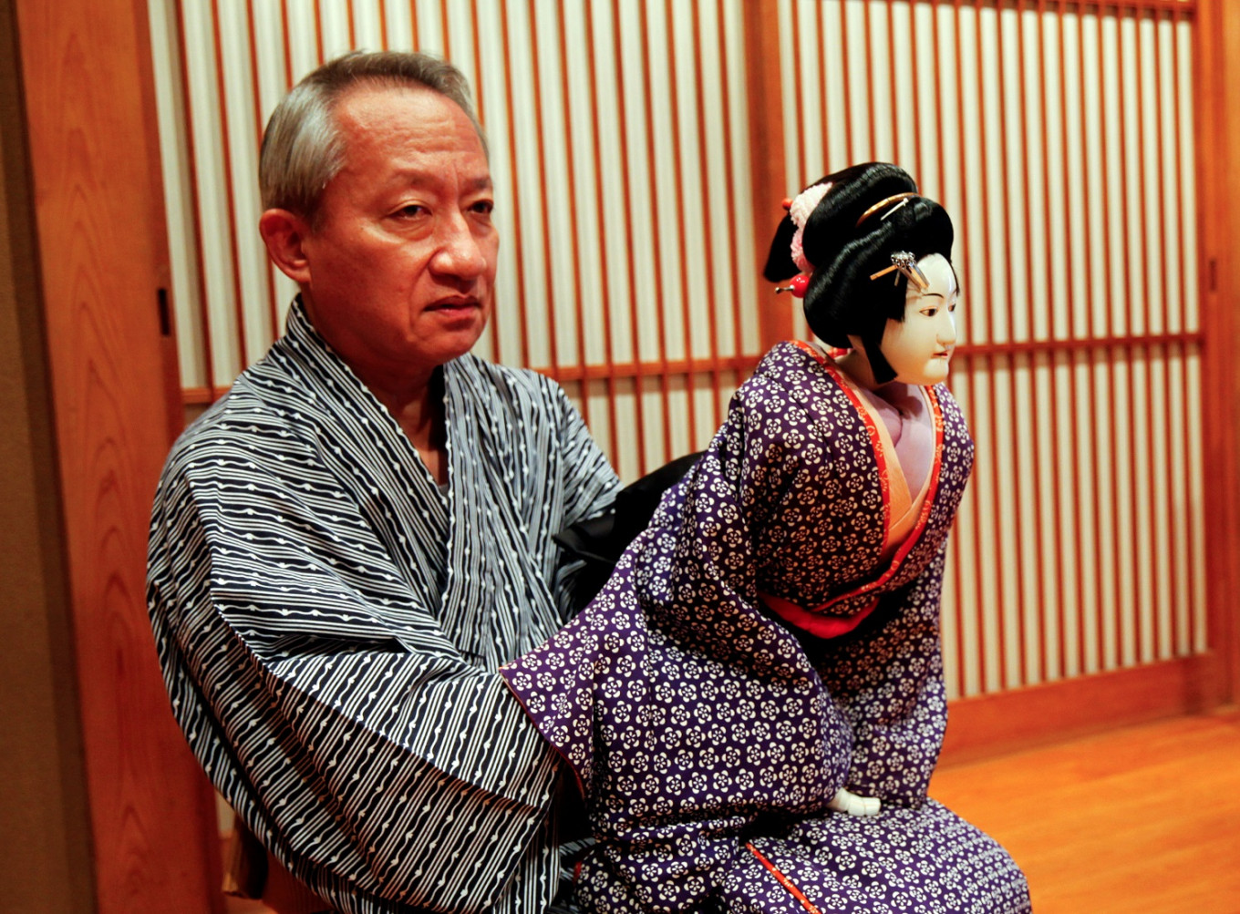 Kanjuro is one of Japan's best-known Bunraku performers, but he still worries about securing young talent.