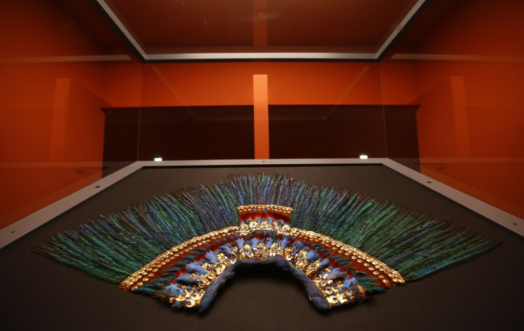 Nearly a meter wide and made from more than 450 elegant, brilliant green feathers, the headdress is said to have been worn by Moctezuma before he was toppled by Spanish conquistador Hernan Cortes.