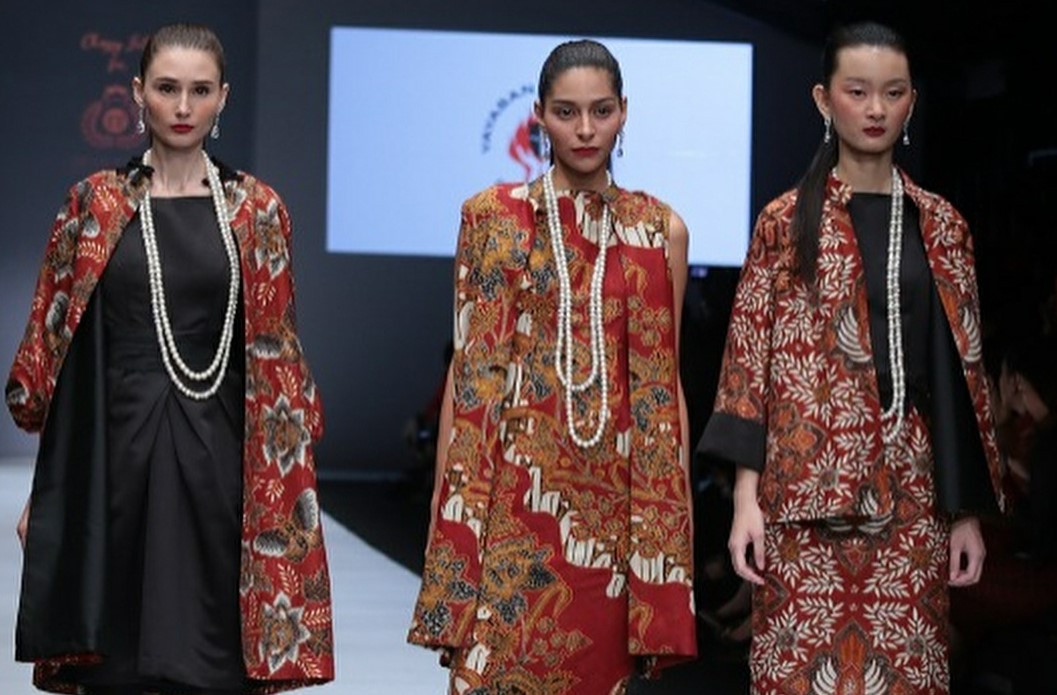 Living heritage: Models present ready-to-wear pieces from the "Nuswantara Menjalin Hati" (Hearts of the Archipelago) collection of Iwan Tirta Private Collection at Jakarta Fashion Week (JFW) 2019. The batik fashion house is presenting “Next Level Batik” at its JFW 2021 show on Nov. 27, 2020. (Courtesy of Iwan Tirta Private Collection/Instagram)