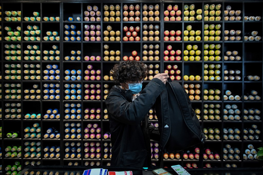 A graffiti artist, in a store where supplies are sold to make graffiti, prepares his bag with spray paint cans in Wuhan on November 22, 2020. A graffiti artist, in a store where supplies are sold to make graffiti, prepares his bag with spray paint cans in Wuhan on November 22, 2020. (AFP/Hector Retamal)