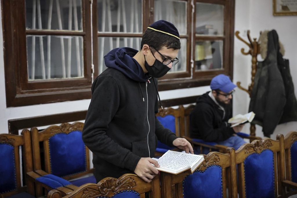 Members of the Moroccan Jewish community pray at the synagogue of Em Habanim in the western city of Casablanca on January 5, 2021. Morocco, home to to North Africa's biggest Jewish community and the ancestors of some 700,000 Israelis, is also hoping for an influx of Israeli tourists as the coronavirus pandemic eases. (Agence France Presse/Fadel Senna)