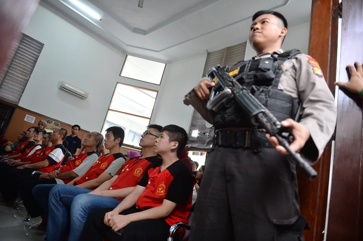 The three men were waiting on Anyer Beach, Banten while the five defendants unloaded crystal methamphetamine from the yacht.