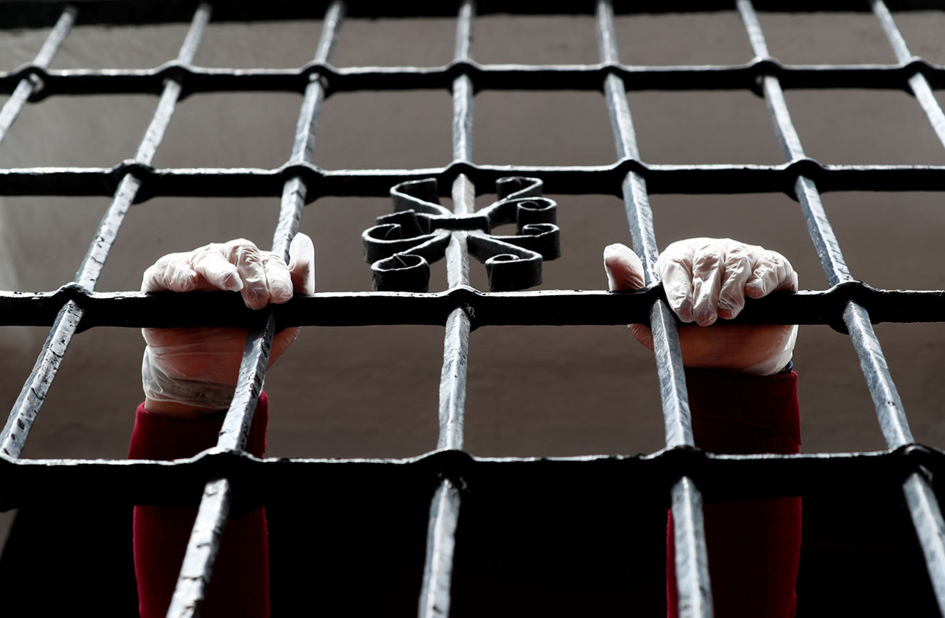 A woman wearing protective gloves grabs the iron bars of her window, amid the coronavirus disease (COVID-19) outbreak in Ronda, southern Spain, on Thursday. Some 900,000 workers have lost their job since mid-March, with those on short-term contracts in tourism or construction among the hardest hit. (REUTERS/Jon Nazca )