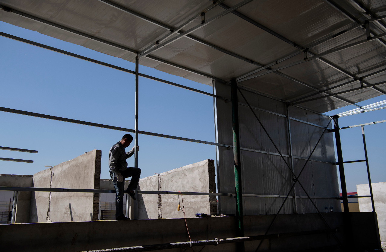 This photo taken on Sept. 24, 2019, shows a worker at a quarantined pig pen in Hebei, outside Beijing. More than a year since swine fever began to spread across the country, China's pig farmers are wary of replenishing their stock - and the disease could become a political and economic liability for the government. (Noel Celis/AFP)