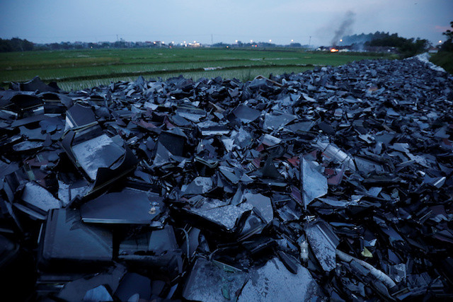 Broken TV and computer screens are seen at a garbage dump near a rice field in Vinh Phuc province, Vietnam, July 1, 2020. Picture taken July 1, 2020.Humans discarded more than 50 million tons of electronic waste last year -- an increase of 20 percent in just five years -- making tech refuse the world's fastest growing waste problem, the United Nations said Thursday. (Reuters/Kham)