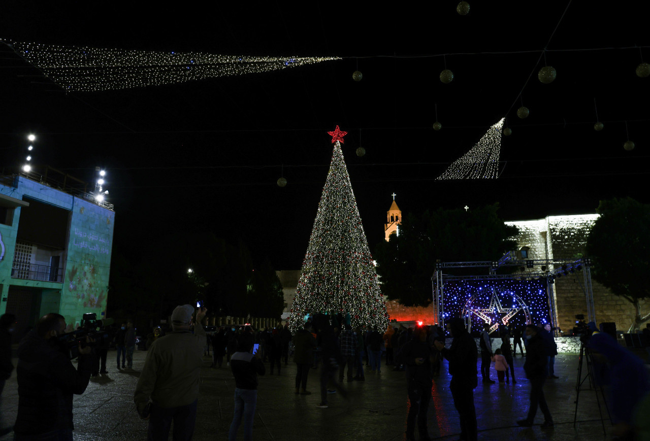 Locals and pilgrims traditionally gather each year for the lighting of the tree in Manger Square, near the Church of the Nativity, built on the site where Christians believe Jesus was born.