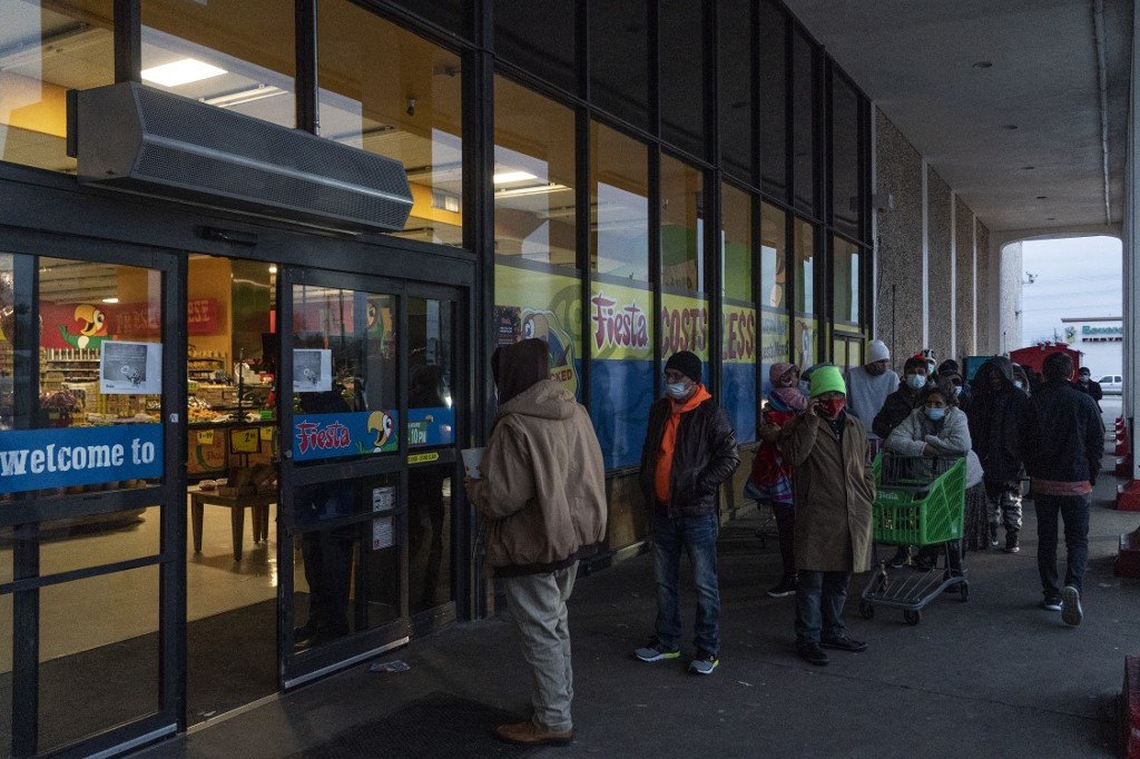 People wait in line to enter Fiesta supermarket on February 16, 2021 in Houston, Texas. Winter storm Uri has brought historic cold weather, power outages and traffic accidents to Texas as storms have swept across 26 states with a mix of freezing temperatures and precipitation. (Agence France Presse/Go Nakamura/Getty Images)