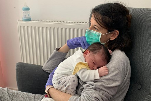 This handout picture courtesy of the Carrillo Muro family dated March 28, 2020 shows Vanesa Muro, 34, holding her baby Oliver, born on March 13, 2020, at their home in Madrid. - For 10 days after giving birth to her first child, Vanesa Muro was not allowed near him after she tested positive for coronavirus, for fear of infecting her newborn baby.
