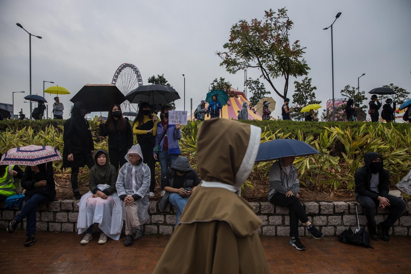 Pro-democracy protesters attend a rally at Edinburgh Place in the Central district of Hong Kong on December 29, 2019. Hong Kong has been battered by more than six months of protests that has upended the financial hub's reputation for stability and helped tip the city into recession.