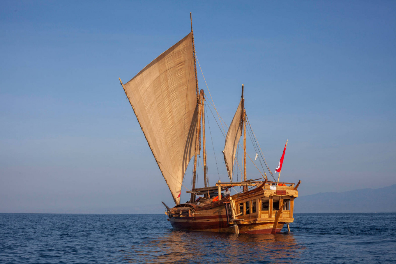 The 15-meter vessel was built by Makassar craftsmen on a beach in Sulawesi using traditional methods and local timber.