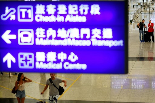 Passengers walk in the arrivals area after Hong Kong's International airport resumed operations early August 13, 2019. Flights resumed on August 13 at Hong Kong airport a day after a massive pro-democracy rally there forced the shutdown of the busy international transport hub.