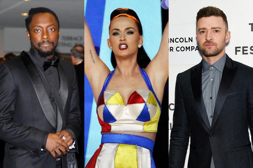 This combination of 2011, 2015 and 2016 photos shows will.i.am, Katy Perry and Justin Timberlake. A study published Monday, June 6, 2016 in the journal Pediatrics shows that 20 of the hottest teen-music heartthrobs have done TV ads or other promotions for products nutritionists consider unhealthy. The list includes Timberlake ads for Chili's, McDonald's and Pepsi; will.i.am ads for Coca-Cola, Doritos, Dr. Pepper and Pepsi; and a Perry endorsement for Popchips. (Associated Press/-)
